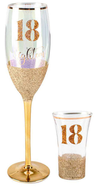 18th Birthday Champagne Glass & Shot Glass Set Glitterati