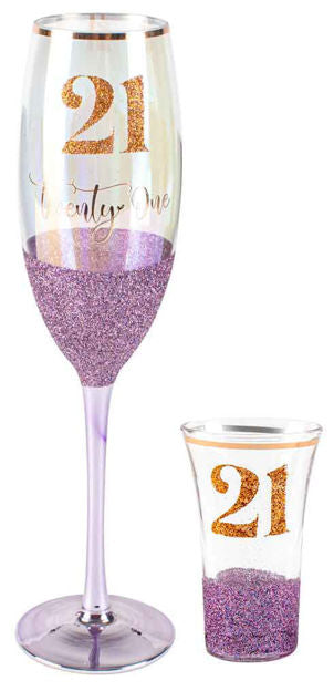 21st Birthday Champagne Glass & Shot Glass Set Glitterati