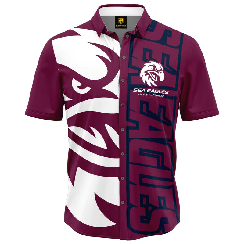 The NRL Sea Eagles 'Showtime' Party Shirt is made with a light pique knit fabric, a perfect choice to keep you comfortable all season long!